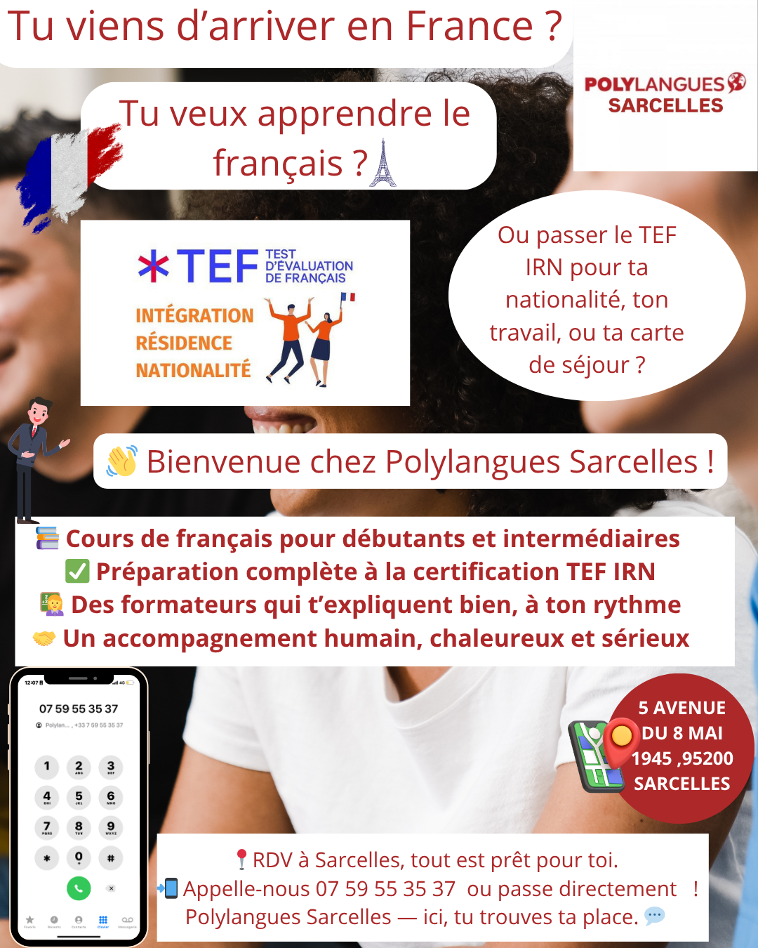 1. Appelez au 07 59 55 35 37 ou passez à Polylangues Sarcelles pour vous inscrire